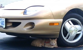 All of a sudden a cat ran into the street and was hit in its back end by a car. I watched for a moment as, with collapsed hind legs, it tried to run out of traffic to safety. Before the light turned red, I started towards the middle of the intersection, putting my hands in the air.